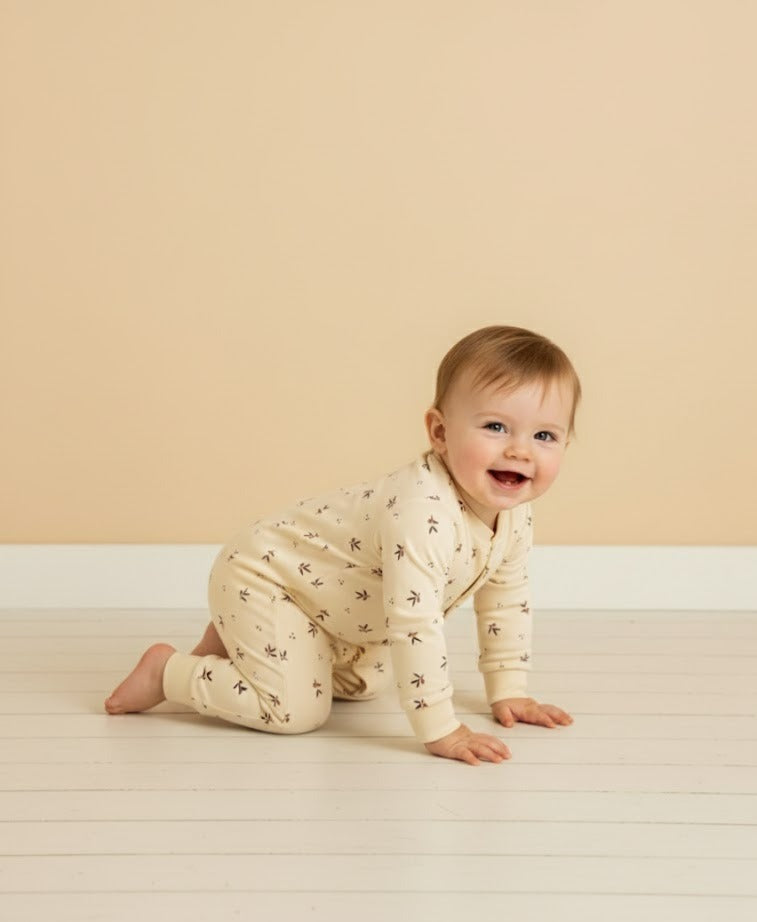 Dress your little one in comfort and style with our "Little Twigs" romper! Made from soft, breathable organic cotton, this sweet cream-colored romper features a charming twig and berry print. Snap closures make changes a breeze, and the gentle fabric is perfect for sensitive skin. Ideal for playtime, naptime, or special outings.